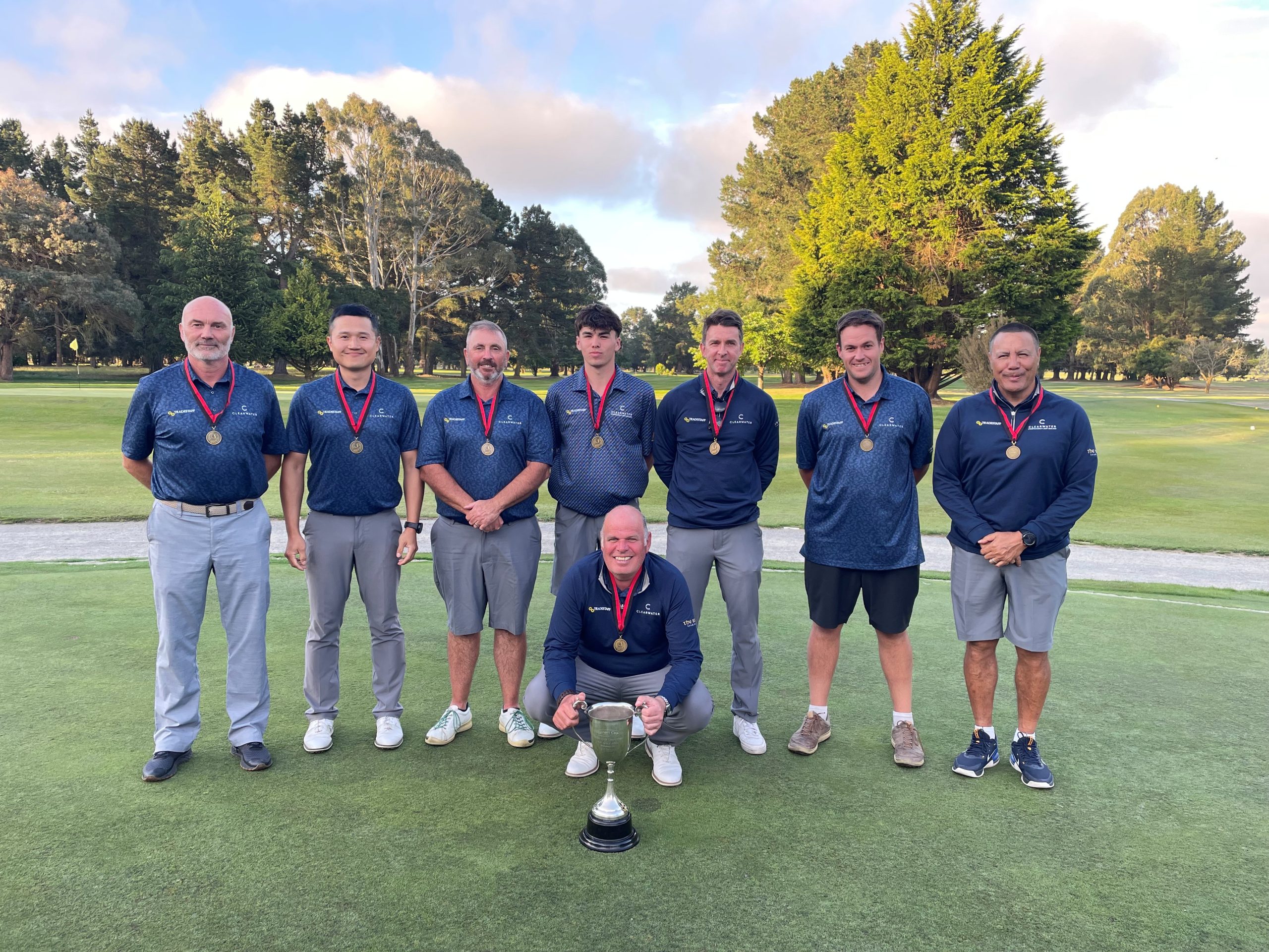 Riding of that good fortune the Harewood men came into the Finals Day with nothing to lose when they took on unbeaten defending champions and top seeds Clearwater. But the script didn’t go as many expected with the team taking the battle to the favourites from the outset with James Howard soon going 4Up in his match at the top of the order vs recent Match Play champion Sam McGill, with many of his other teammates also getting off to positive starts. Howard managed to hold off the expected late charge from McGill to win 3&1 with his Harewood playing partner Otis Holland also winning his match 6&5. Clearwater young guns did the job in their matches with Cooper Moore winning 4&3, James Mordaunt winning 5&3, and Brodie Ferguson winning 3&2. However, with Harewood’s Josh Smith and Cameron Powell winning their matches, combined with Sam McCarroll’s half they managed to get to the magic 4.5 points to claim a 4.5-3.5 upset victory. In the other semi-final between 2nd seeds Waitikiri and 3rd seeds Christchurch, this was an even tighter contest! The teams could not be separated after regulation with a 4-4 scoreline. Waitikiri’s points coming from the wins from Warrick Davey, Kieran Sharvin, and Nathan Arnott, alongside Brett Turner and Alex Kelliher’s halves. Meanwhile for Christchurch the wins came from Ethan Lam, Tim Leonard, and Jason Sincock as well as halves from Uny Shao and Harry Weeds. Onto a play-off the tie went, and it took a total of three holes to decide it. Played between Warrick Davey and Tom Lee, the match looked destined to go Waitikiri’s way on the second play-off before Lee chipped in to progress the match to a third, where he was able to pull through to send Christchurch to the final.